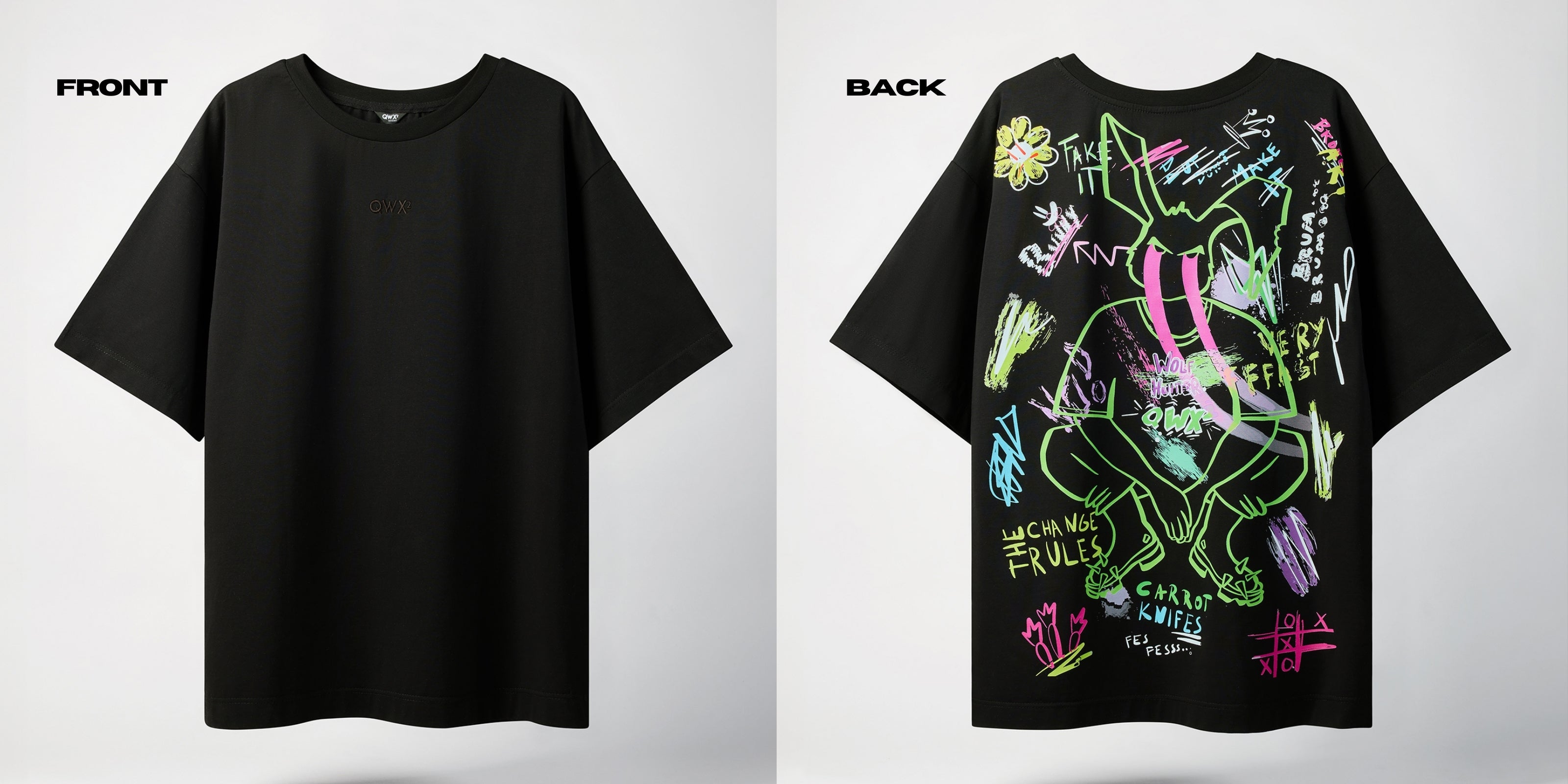 This T-shirt features unique, large-scale graphics covering almost the entire back, delivering a bold and unconventional visual style that’s hard to ignore.