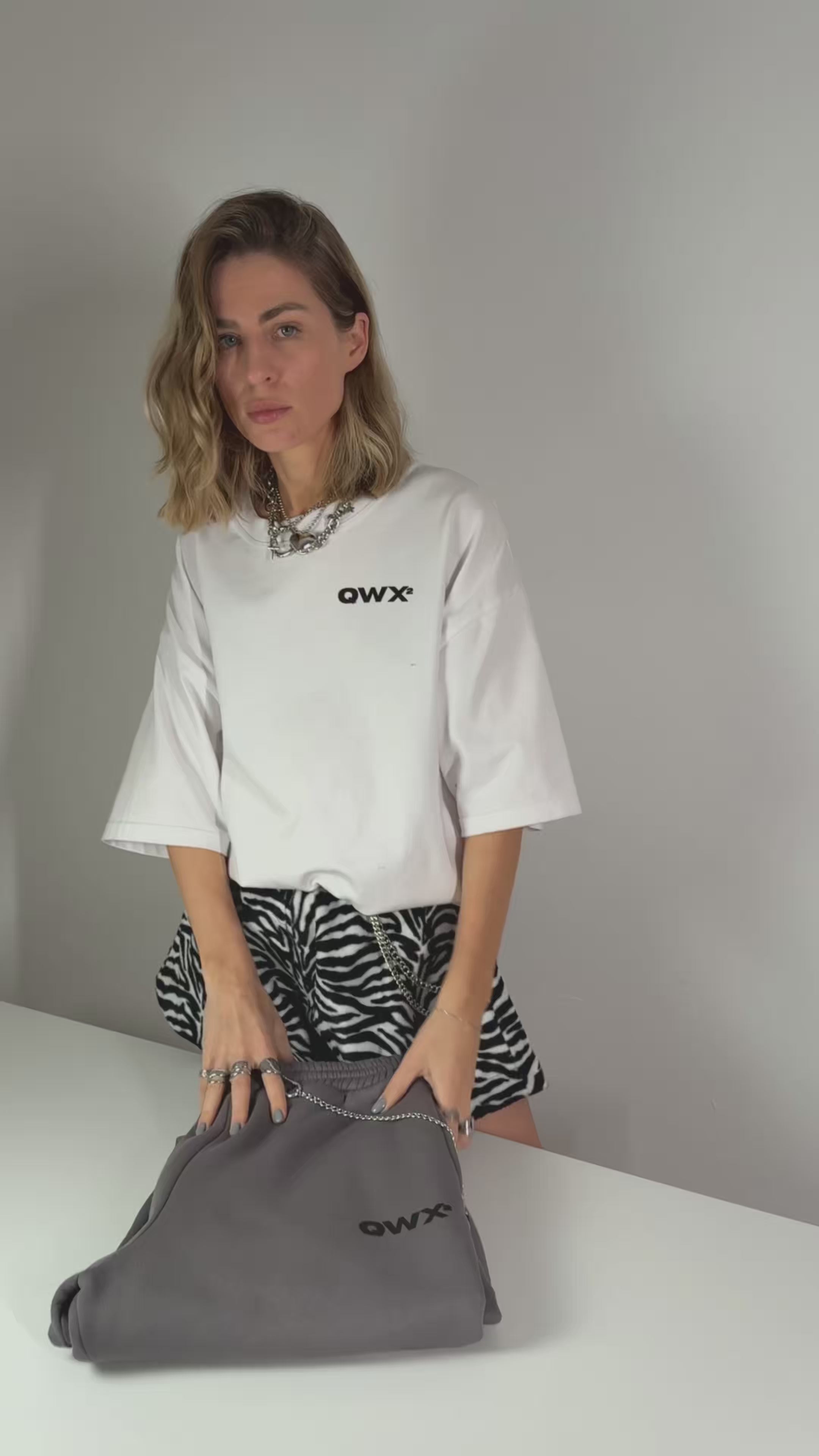QWX2 pieces are designed with a signature oversized fit - more spacious than standard "oversized" on the market. Every size keeps that generous look. The difference lies in length and overall volume, not in tightness.