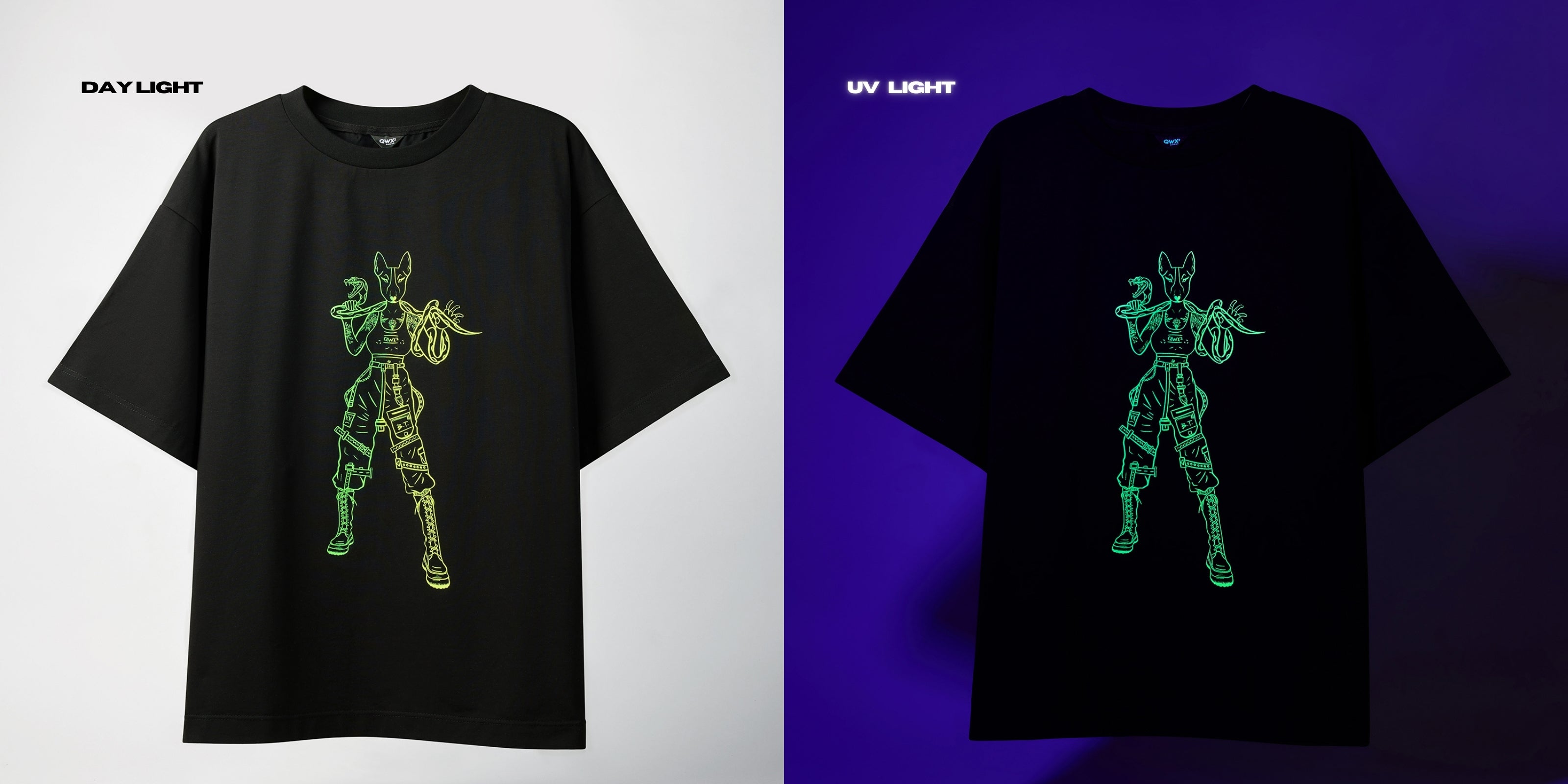 The neon artwork on this T-shirt brings two striking effects: by day, the neon colors are exceptionally bright and eye-catching; by night, under UV light, they glow vividly, creating an unforgettable visual impact. Perfect for making a statement whether it’s daytime or nightlife.